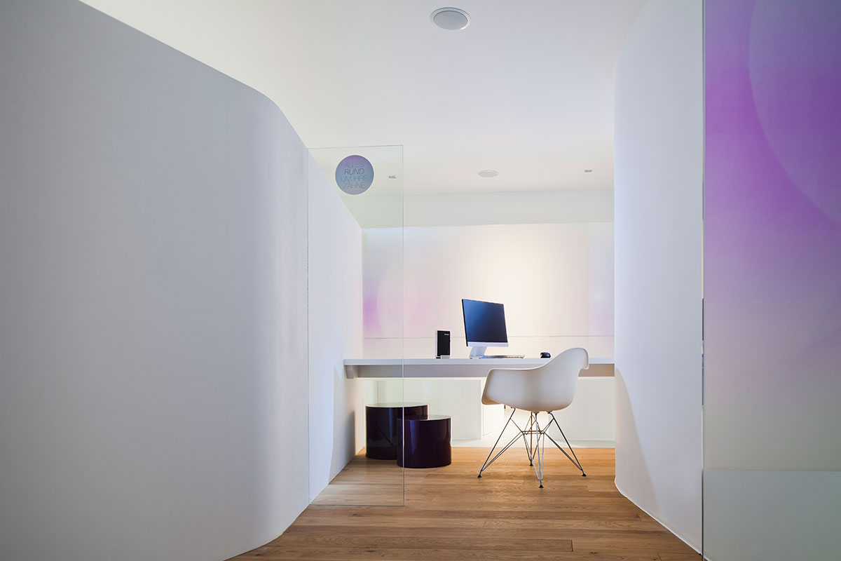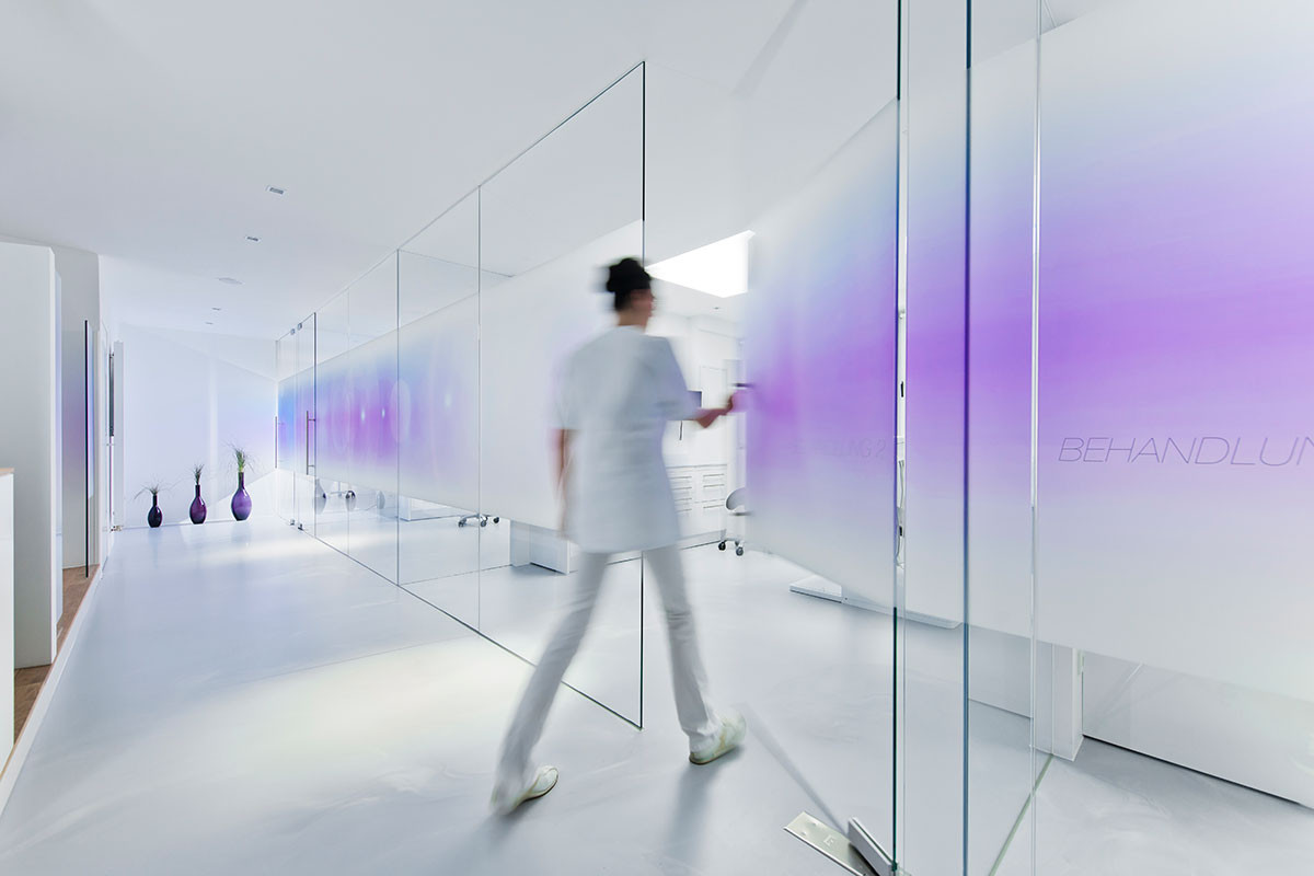 Durch die Inszenierung eines von „Leichtigkeit und Transparenz“ geprägten Artworks soll „Schmerzfreiheit“ vermittelt und die PatientInnen indirekt positiv auf die Behandlung eingestimmt werden. Die implementierten „Flares“-Kreisformen korrespondieren wiederum mit der runden Bildmarke des Logos und stehen archetypisch für Vollkommenheit.