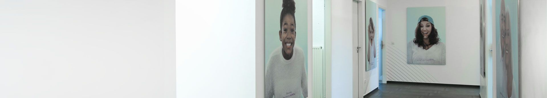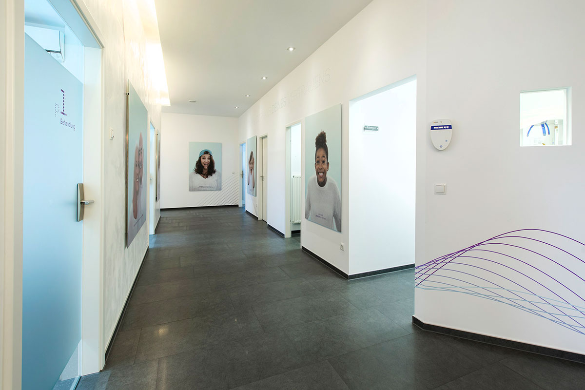 Große, emotionale Fotos der Menschen, die der Praxis wahrhaftig ihr Vertrauen schenken, begrüßen alle neuen und Stammpatienten und schaffen auf den ersten Blick eine fröhliche, angstfreie und harmonische Atmosphäre. Die schönste Form von Gesundheit, die eine Praxis zeigen kann, finden wir.